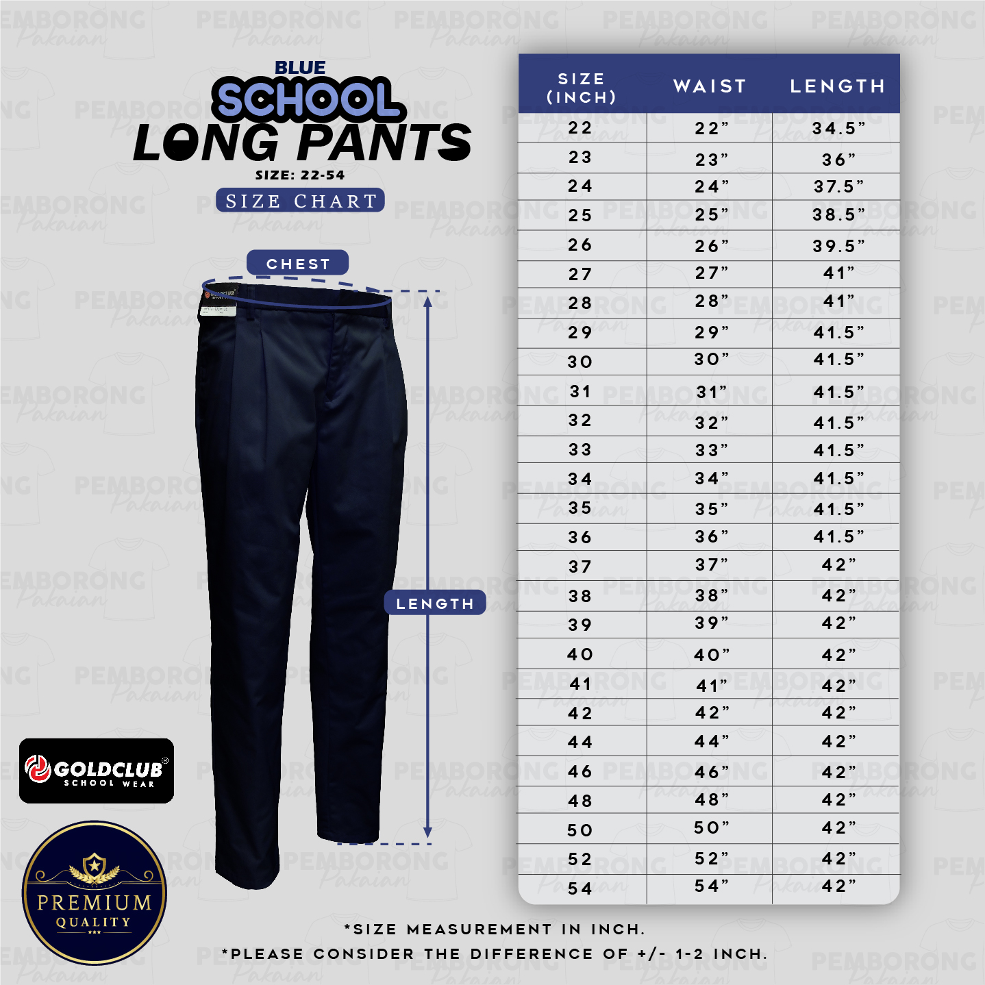 GOLD CLUB Seluar Sekolah Hitam/ Seluar Panjang Hitam /School Black Long Pants