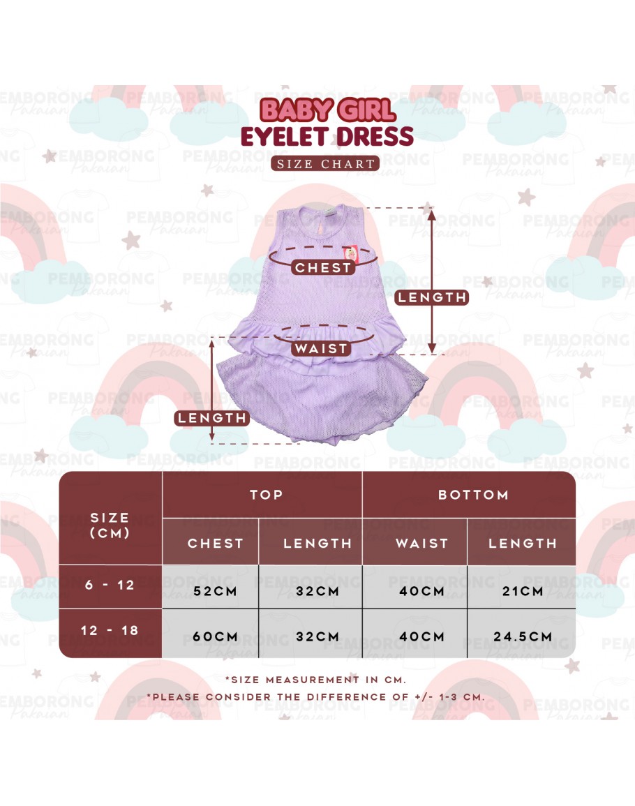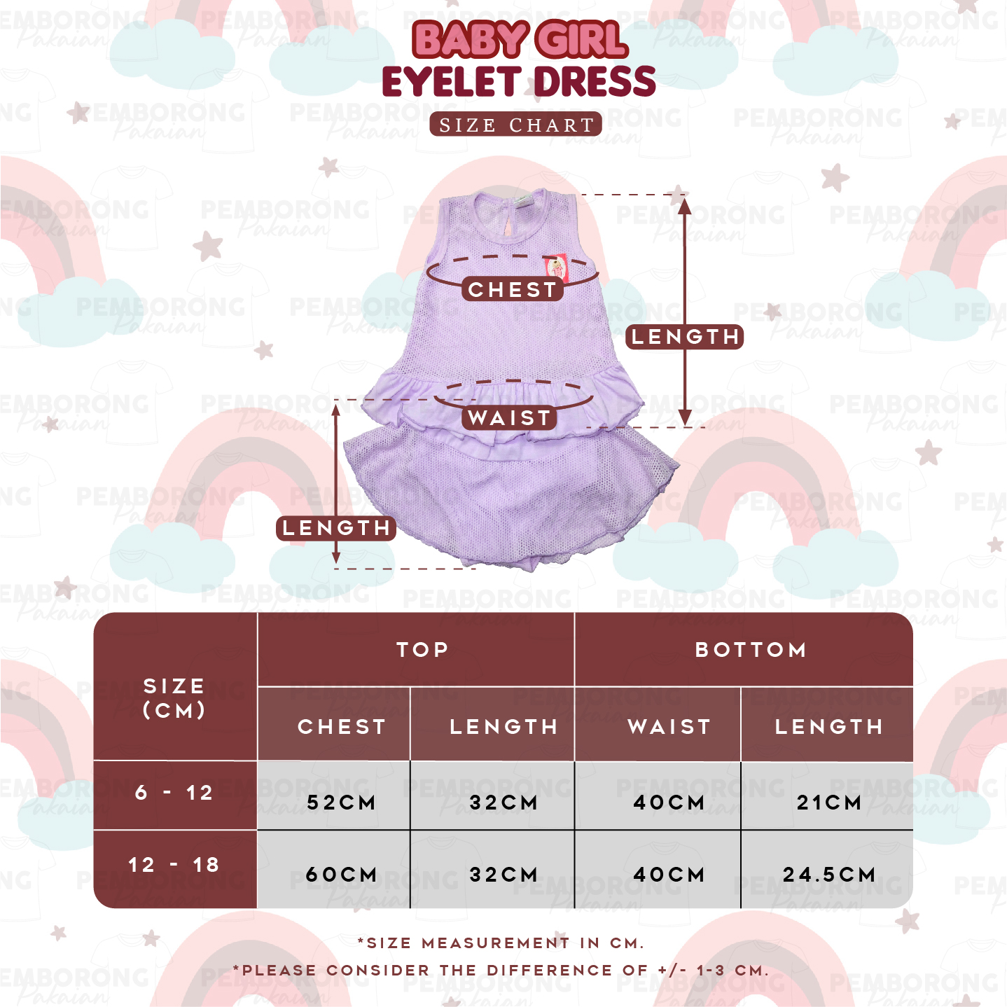 Baby Girl Eyelet Dress Suit/ Dress Bayi Berlubang/ Baby Girl Set 6-12 /12-18 Months