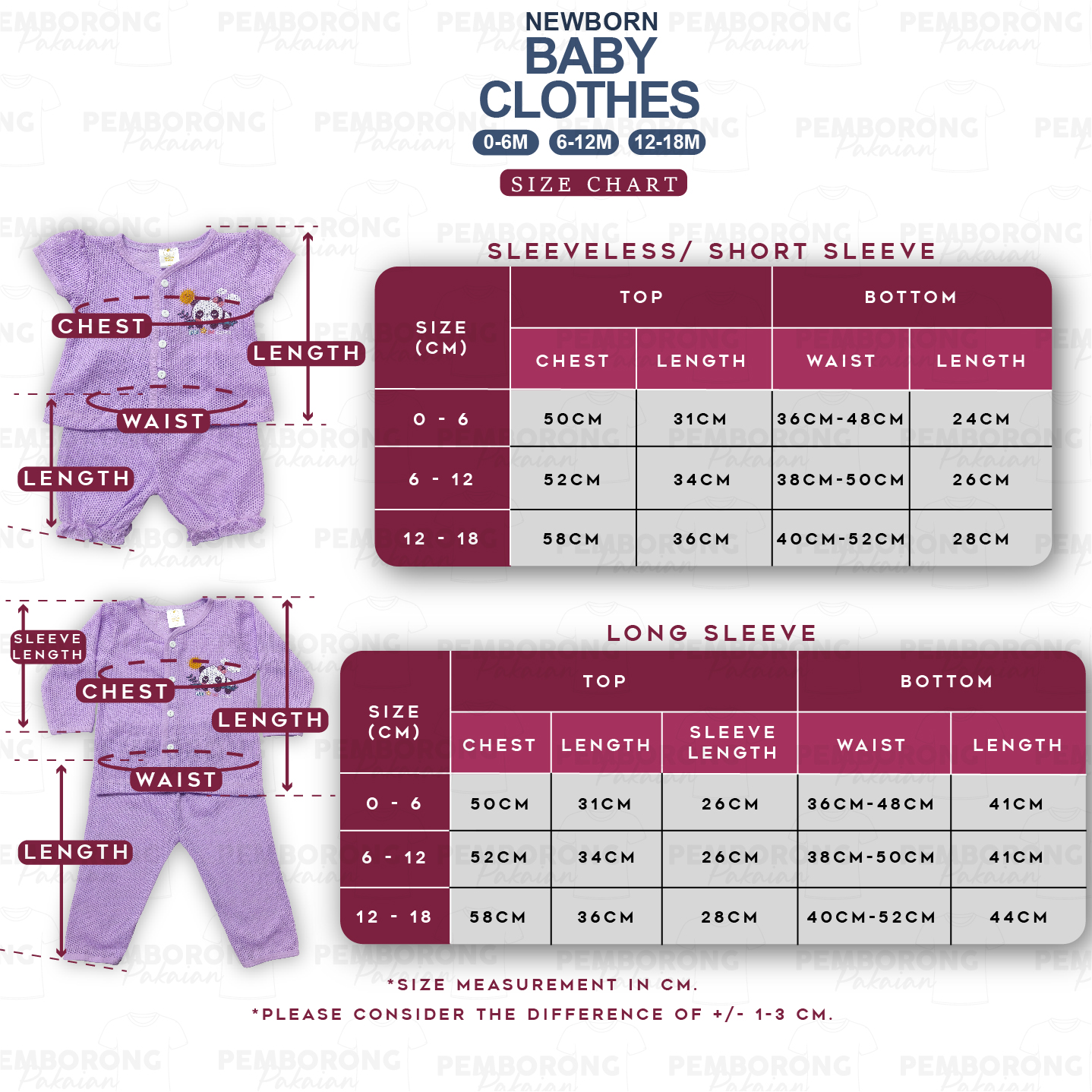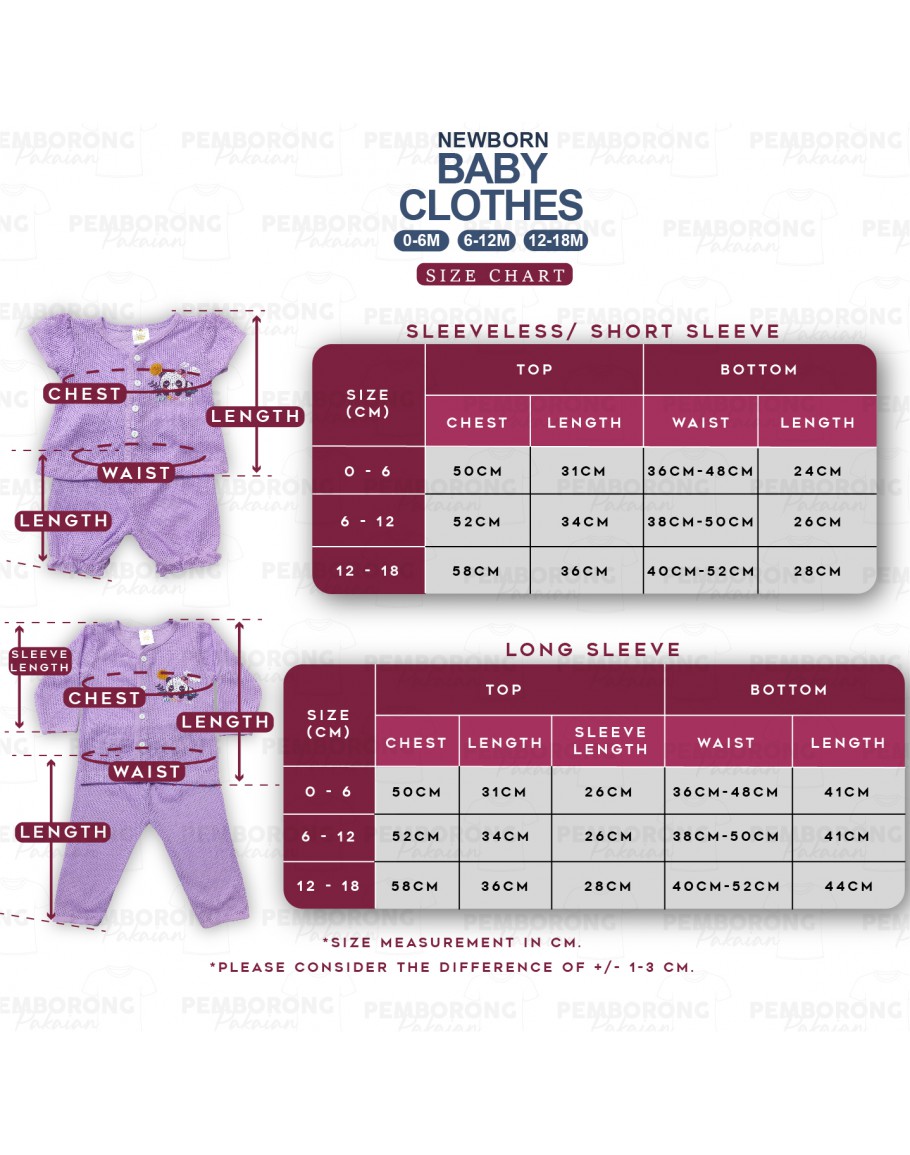 0-18 Month Newborn Baby Eyelet Suit/ Baju Bayi Set Berlubang