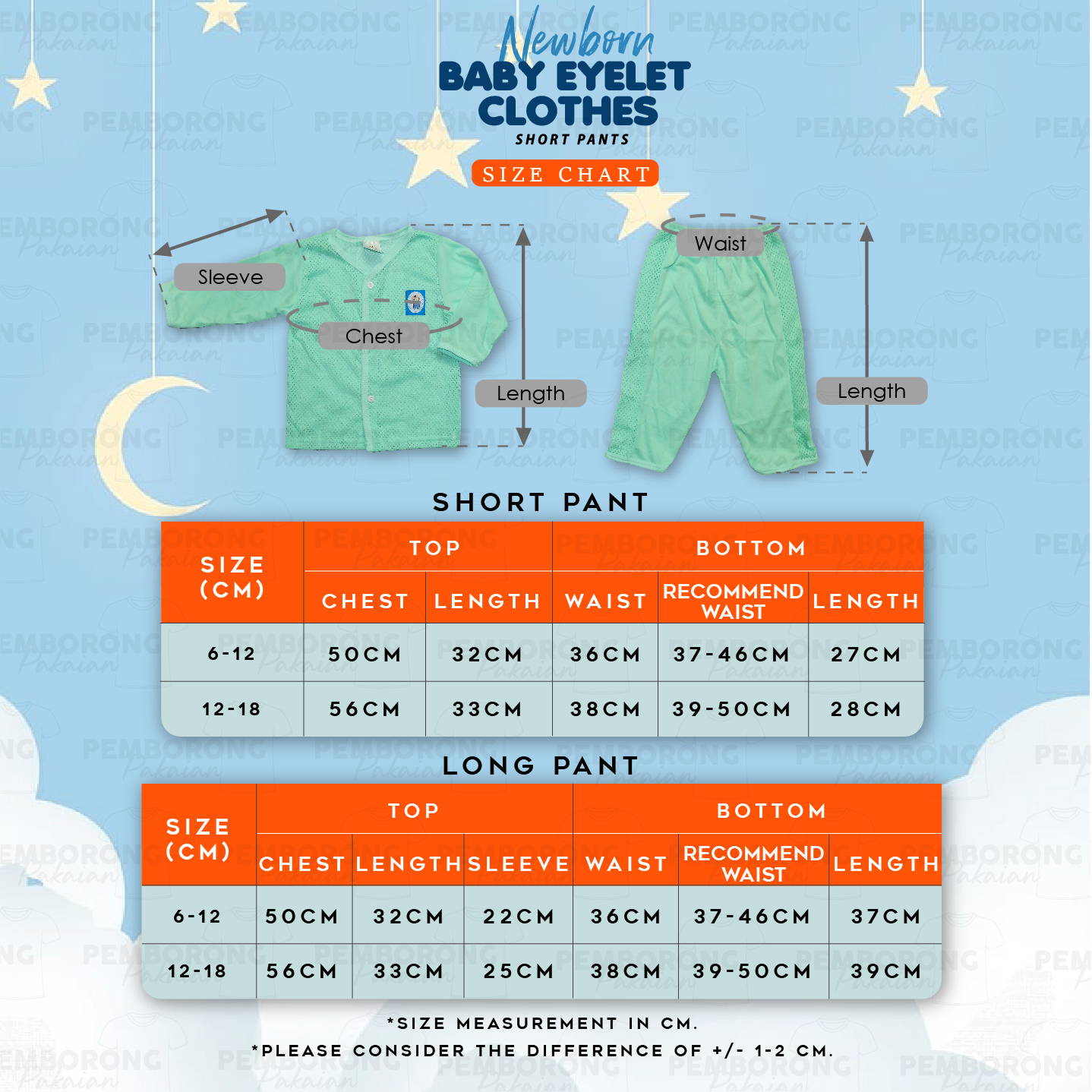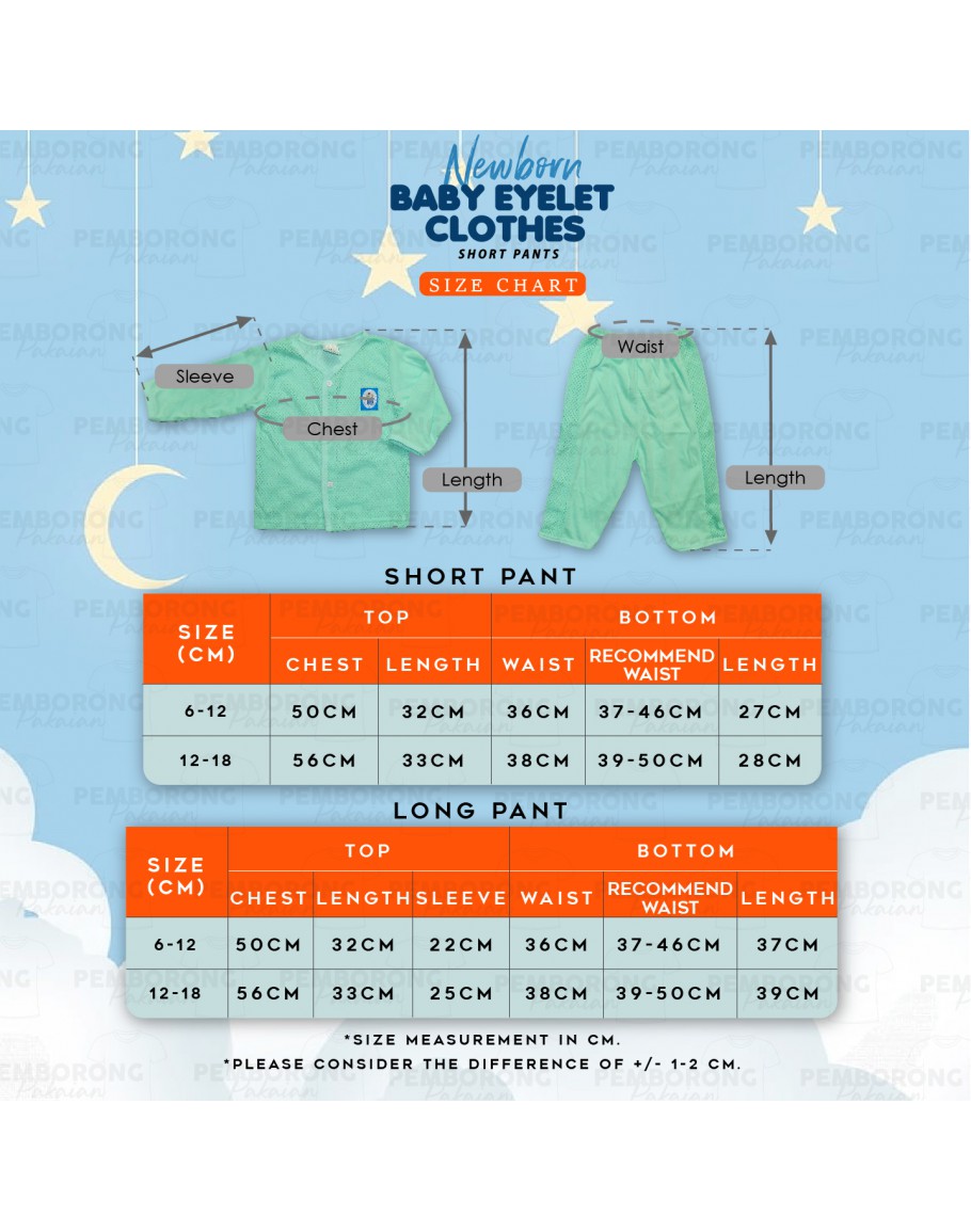 Baju Lubang bayi Eyelet Baby Cloth/ Newborn Baby Sleepwear/ Half Hole Cloth Suit