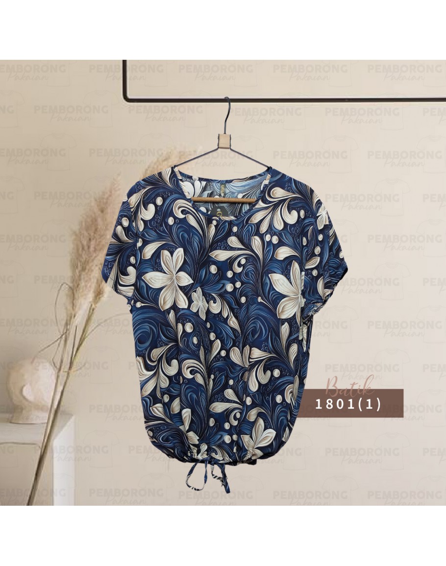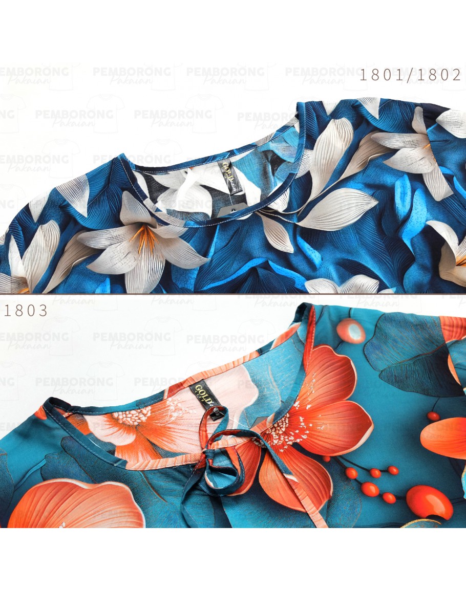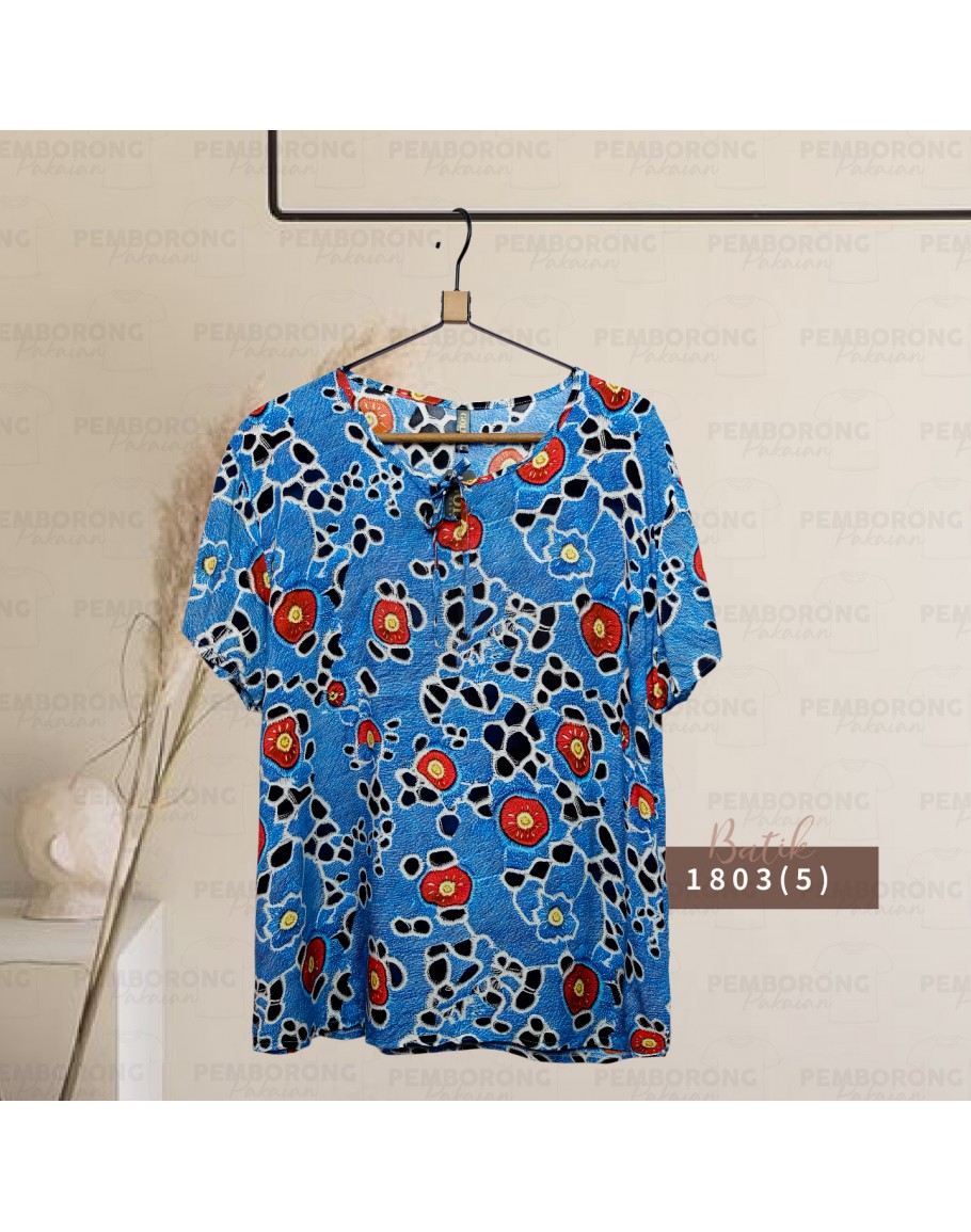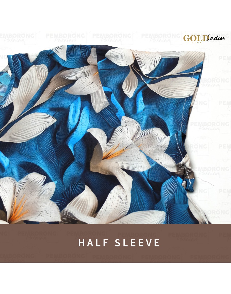 GOLD CLUB Batik Half Sleeve Blouse/ Summer Floral Shirt/ Baju Batik Wanita Casual