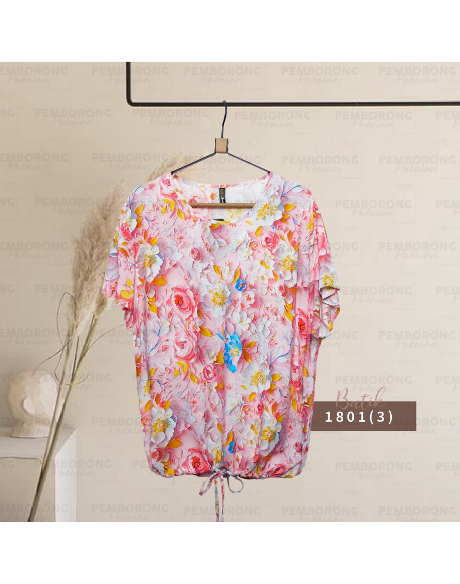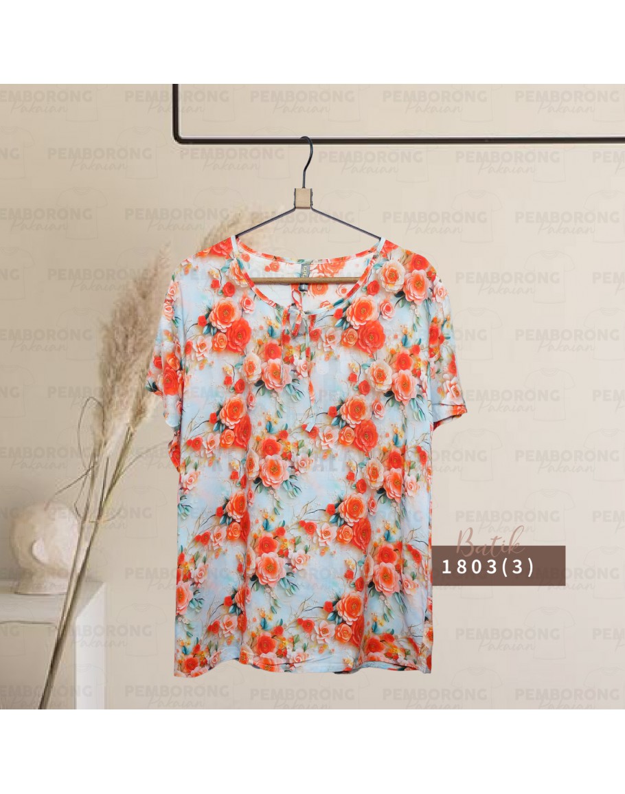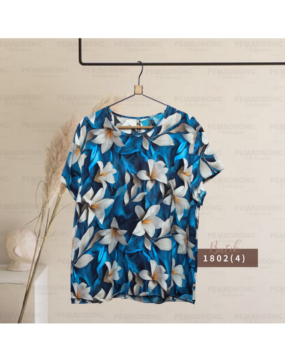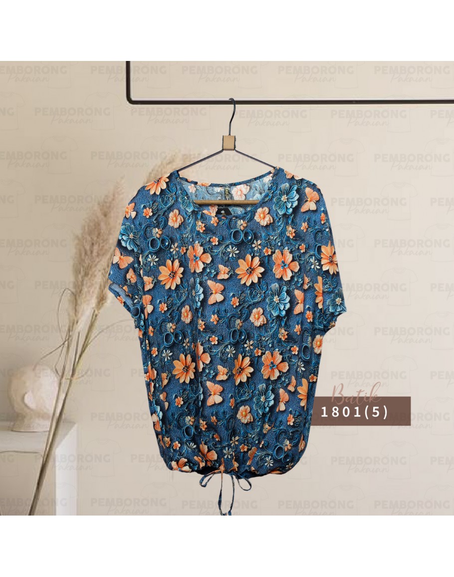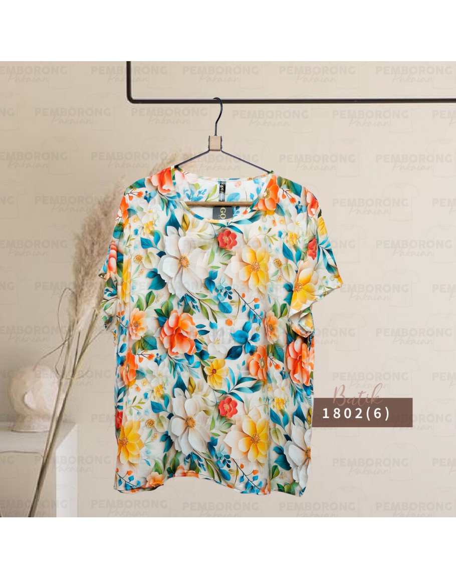 GOLD CLUB Batik Half Sleeve Blouse/ Summer Floral Shirt/ Baju Batik Wanita Casual