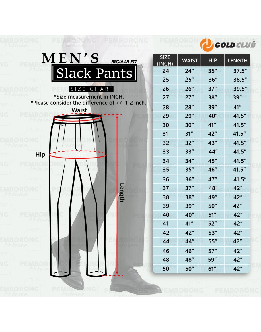 GOLD CLUB Men Slack Pant/ Seluar Slek Lelaki Regular Fit/ Plus size Slack Pant/ Seluar Kerja/ Formal Pants