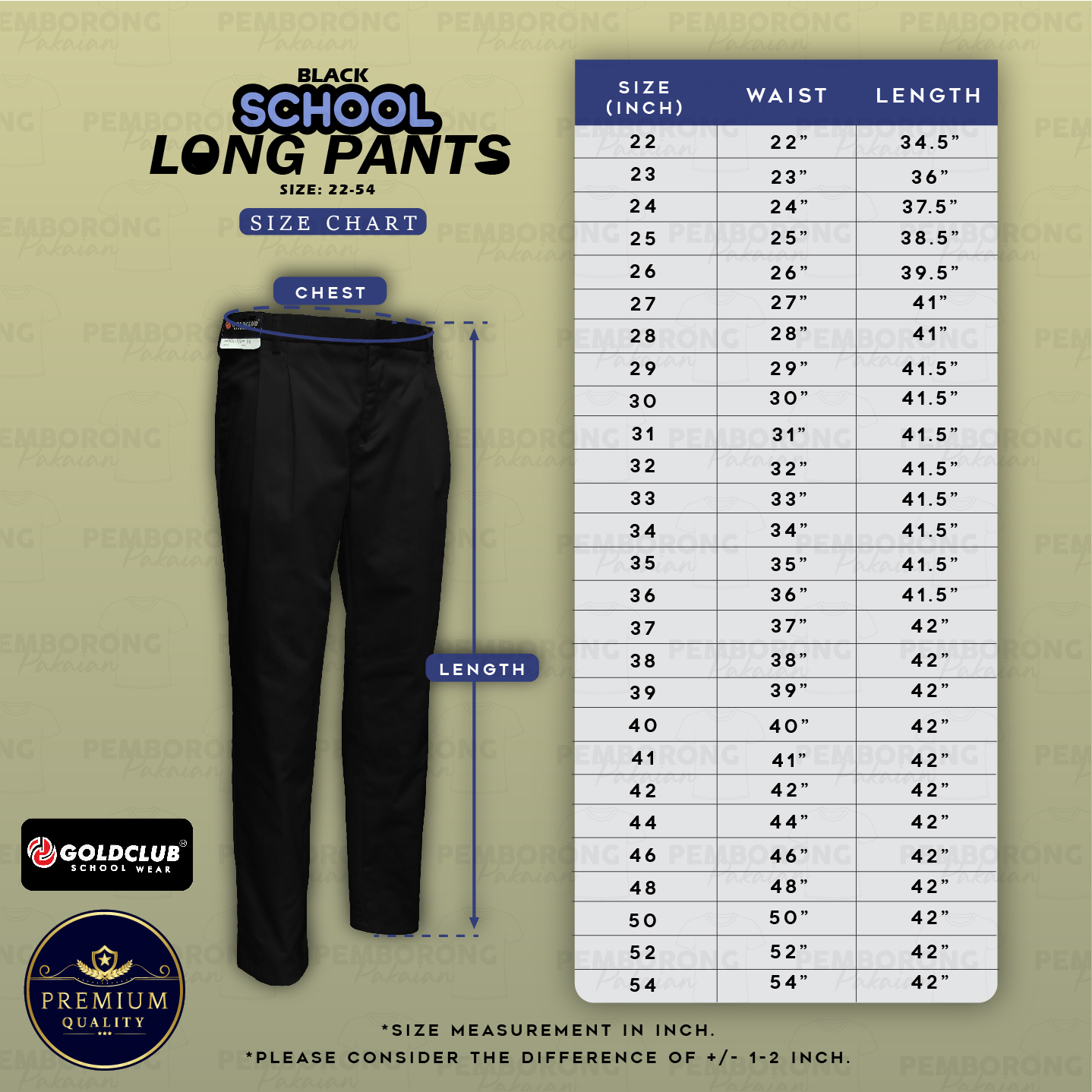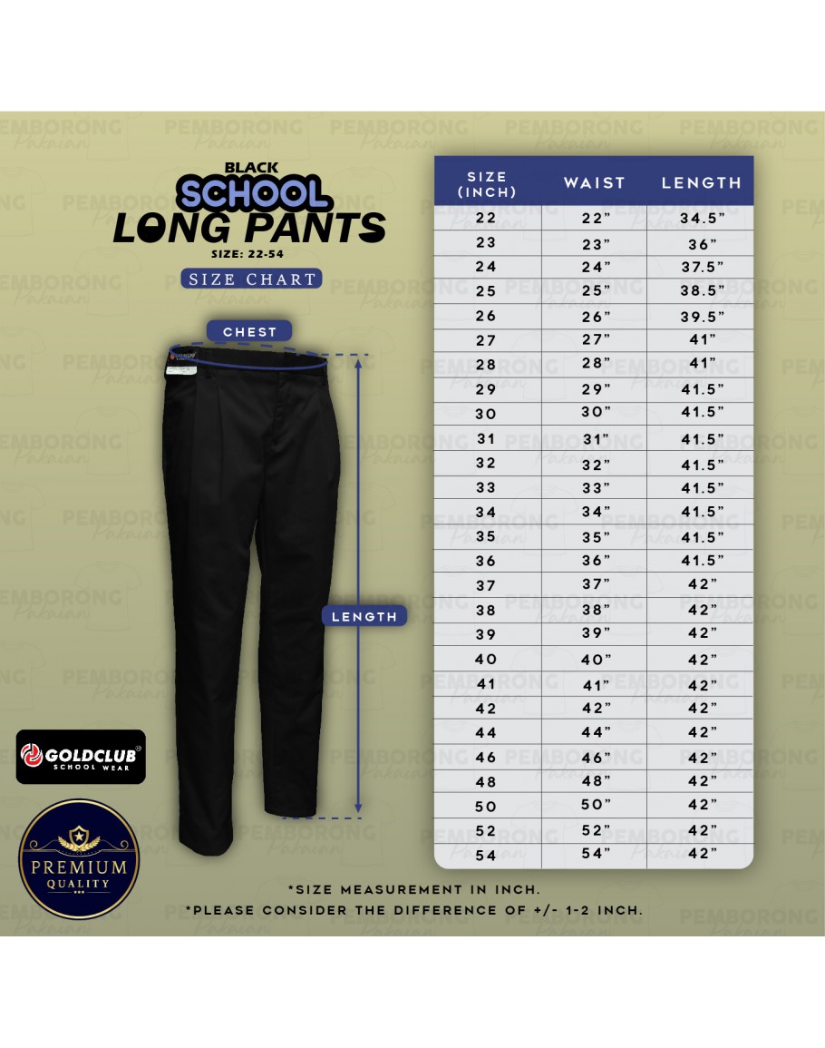 GOLD CLUB Seluar Sekolah Hitam/ Seluar Panjang Hitam /School Black Long Pants