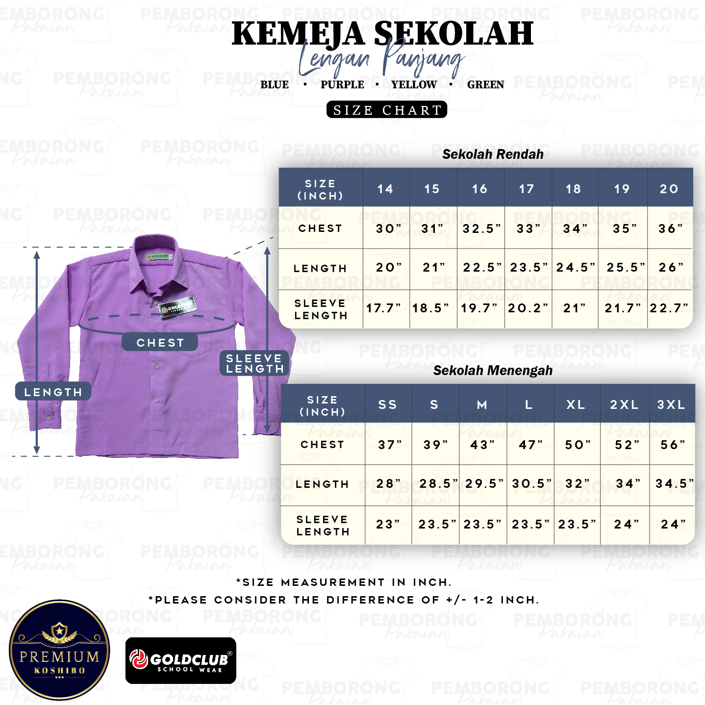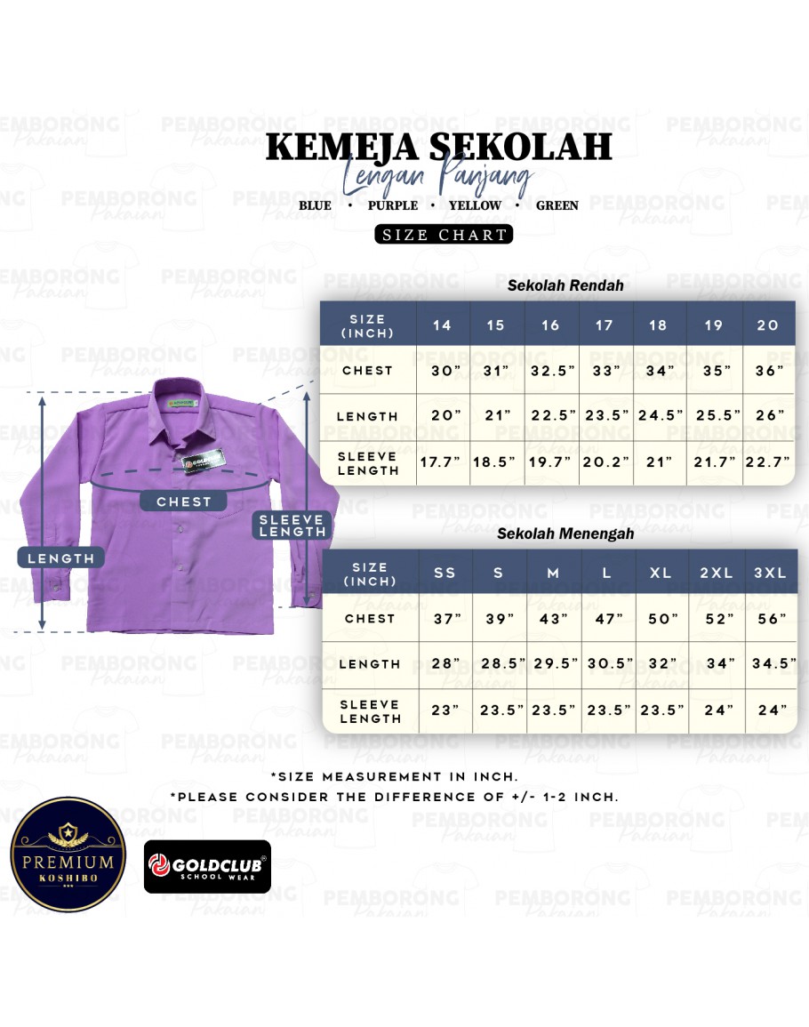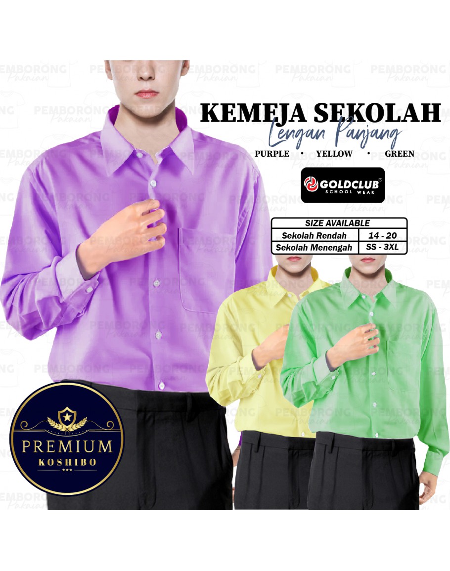 GOLD CLUB Baju Kemeja Pengawas Sekolah Lengan Panjang/ Sekolah Rendah & Sekolah Menengah