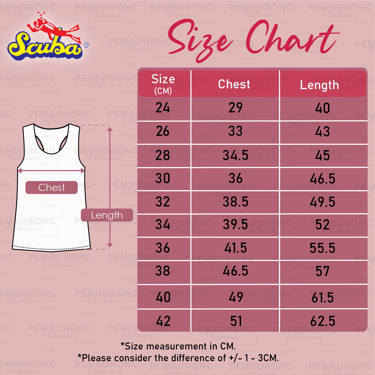 -Size: 24, 26, 28, 30, 32, 34, 36, 38, 40, 42