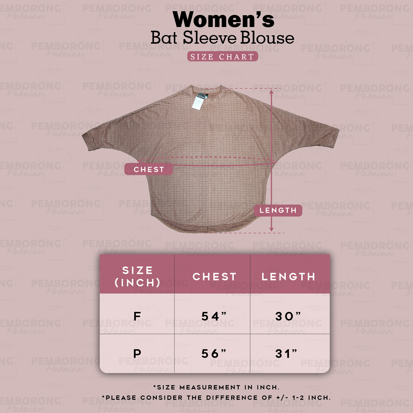 GOLD CLUB Women's Loose Batwing Blouse/ Baju Plain Blouse Wanita Lengan Panjang