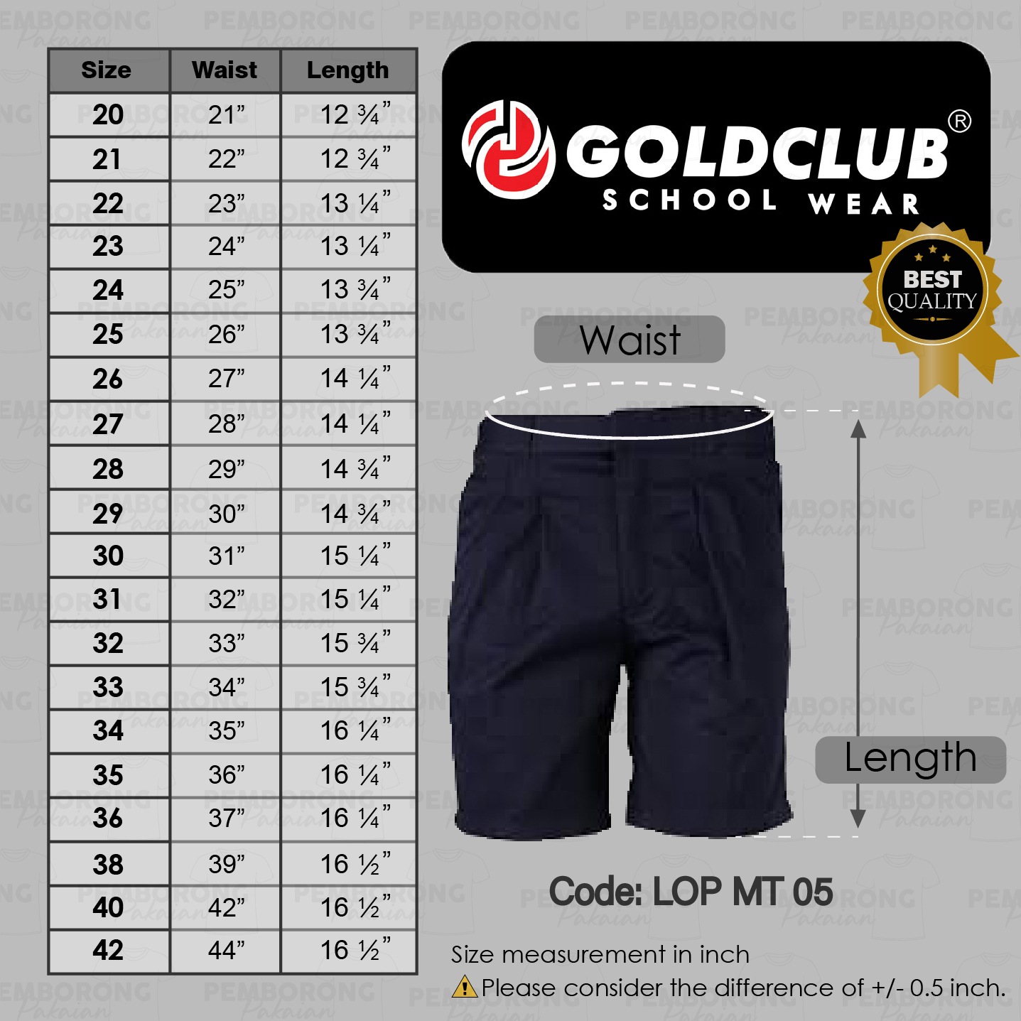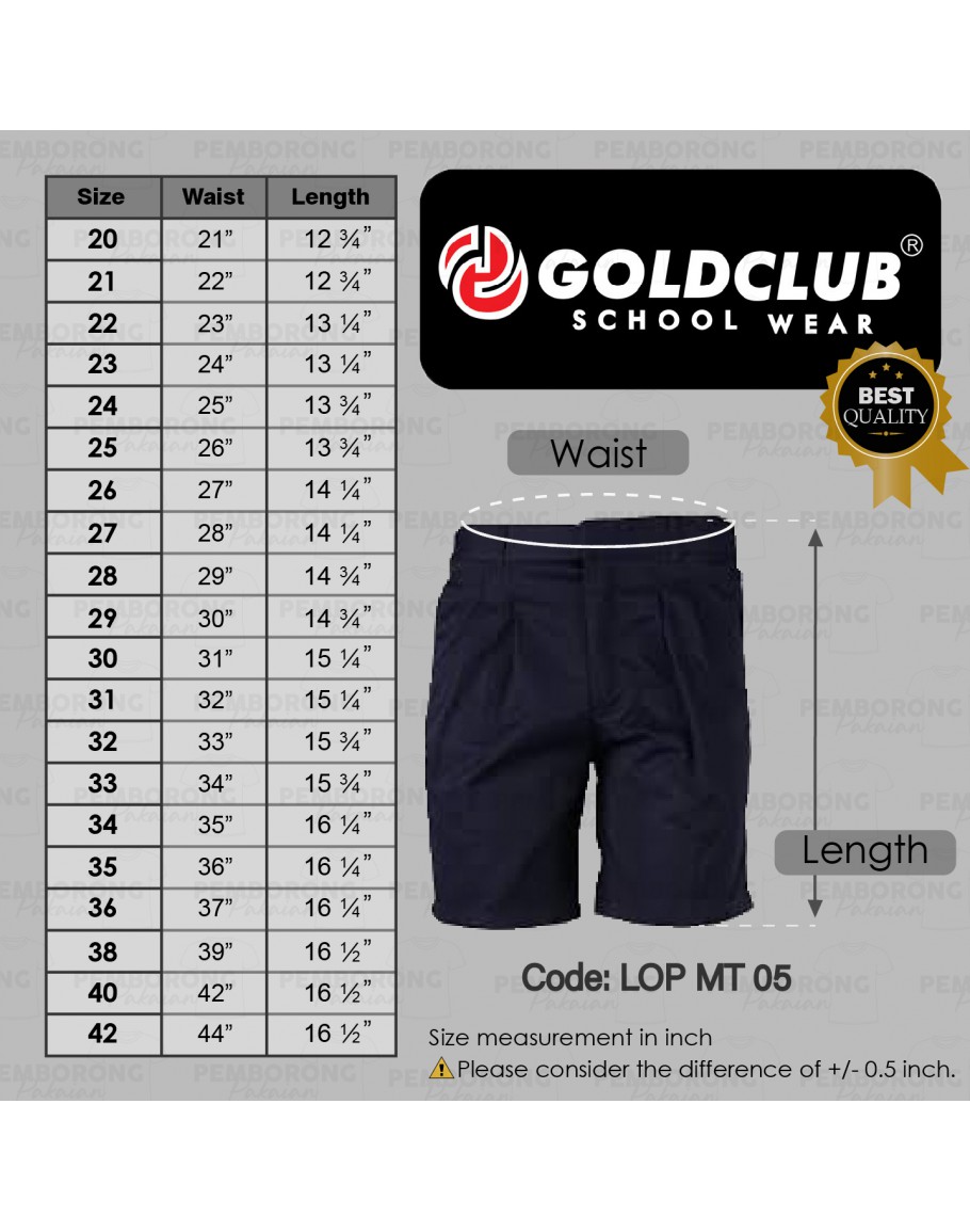 GOLD CLUB Seluar Pendek Biru Sekolah Rendah / Primary School Boy Short Pant/ Kemeja Putih Sekolah