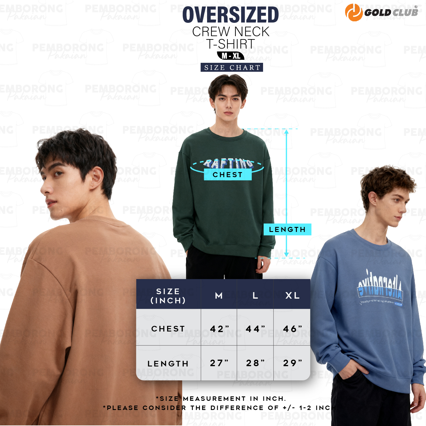 GOLD CLUB Plain Oversized Cotton T-Shirts Short Sleeve/ Korea Style Plain T-shirt/ Baju Lelaki Oversized