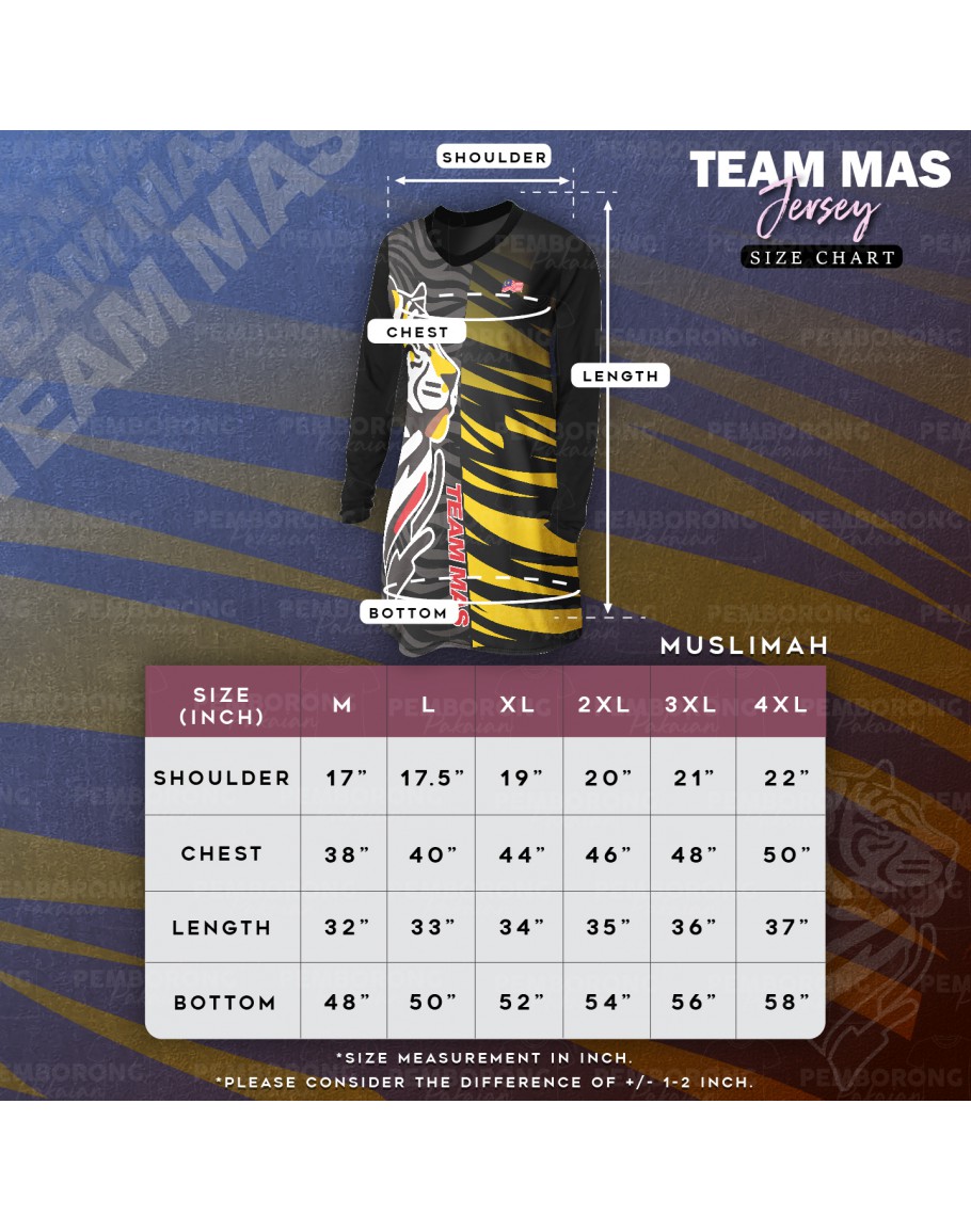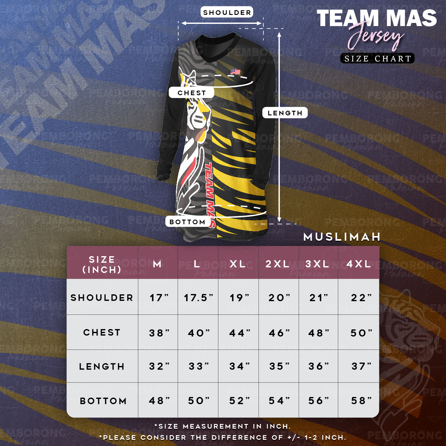 Jersey Muslimah Team MAS Round Neck/ Sport Jersi Malaysia