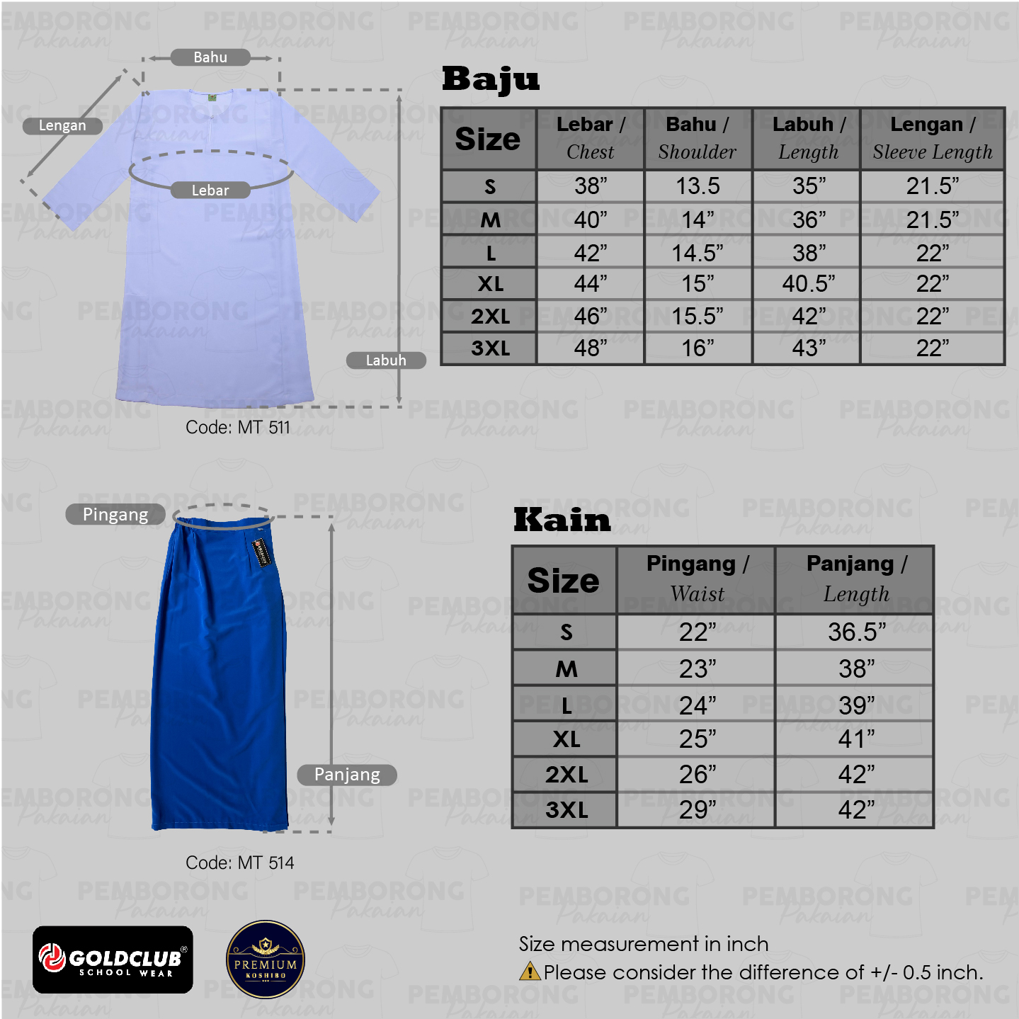 Add to Cart-Code: MT511 (Baju), MT 514 (Kain)-Size: S, M, L, XL, 2XL, 3XL-Material: Premium Koshibo-Gender: Gir..