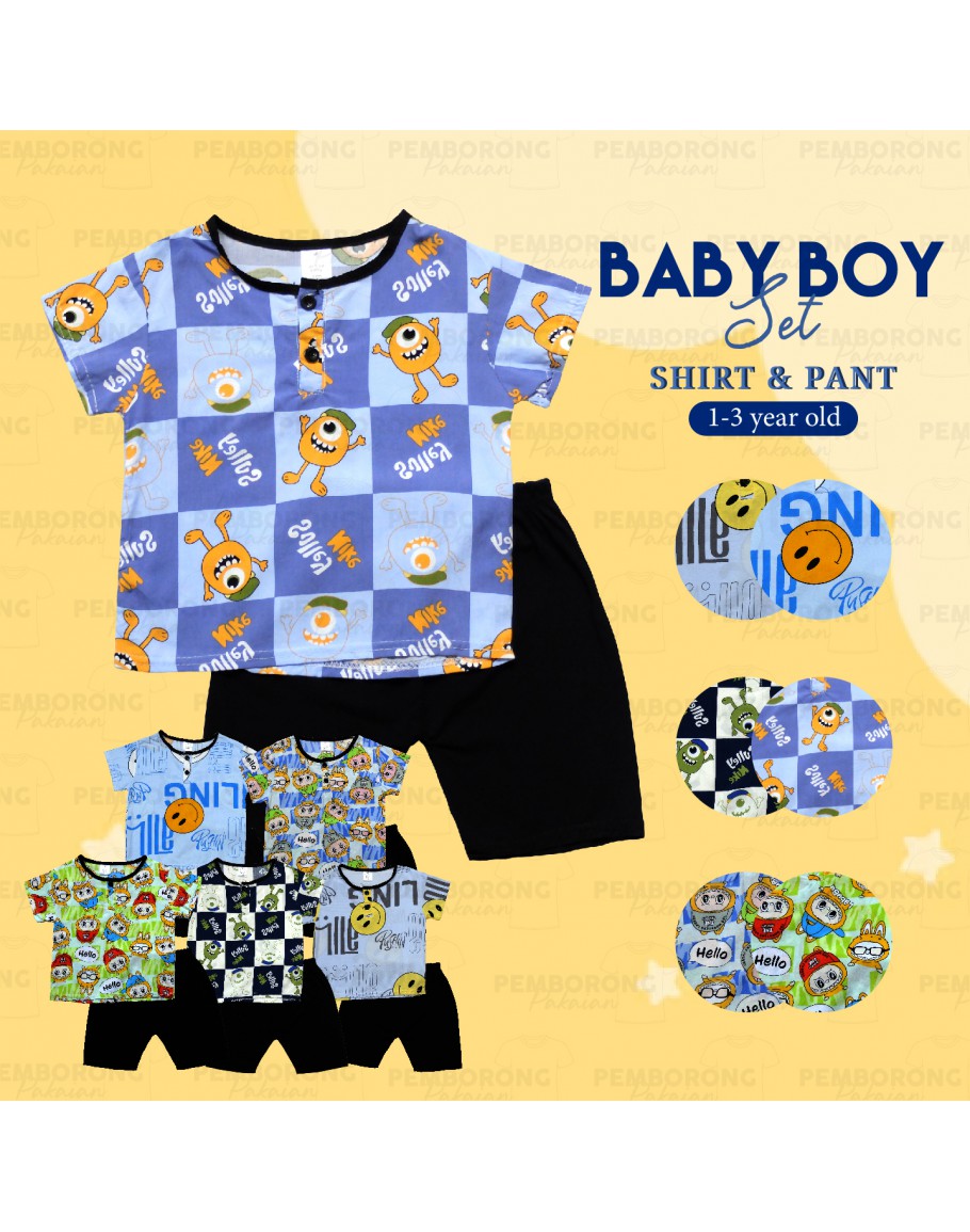 (1-3Y) Kids Boy's Clothes Suit Set/ Summer Boy's T-shirt & Short Pant/ Baju Set Budak Lelaki